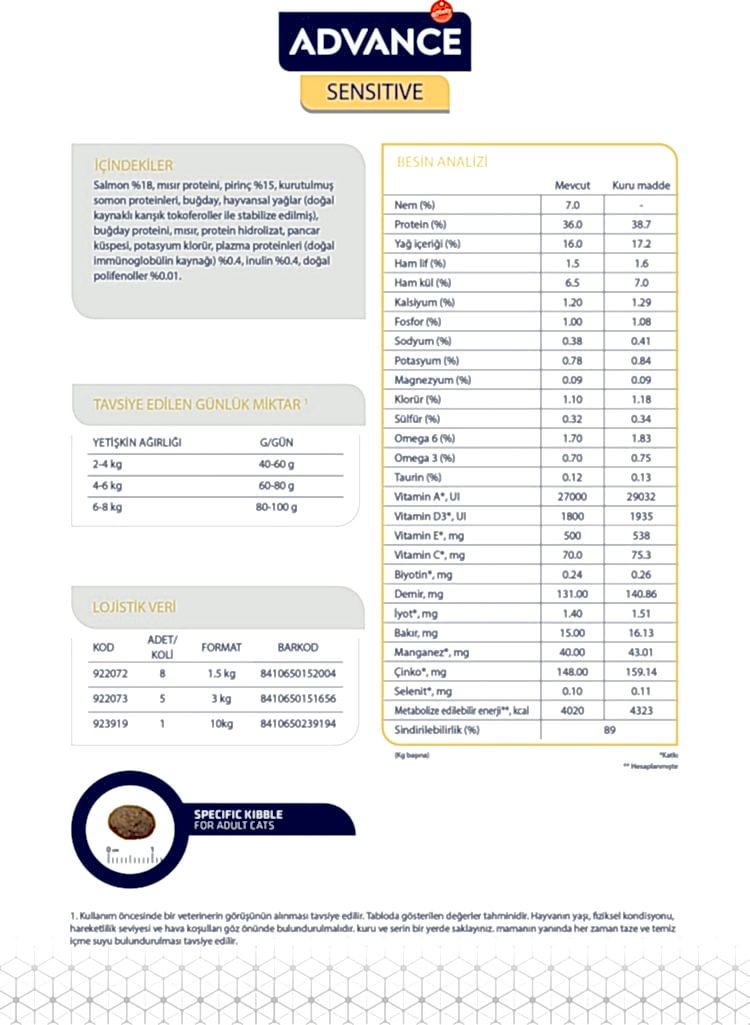 Advance Cat Sterılızed Salmon Sensıtıve 3 Kg
