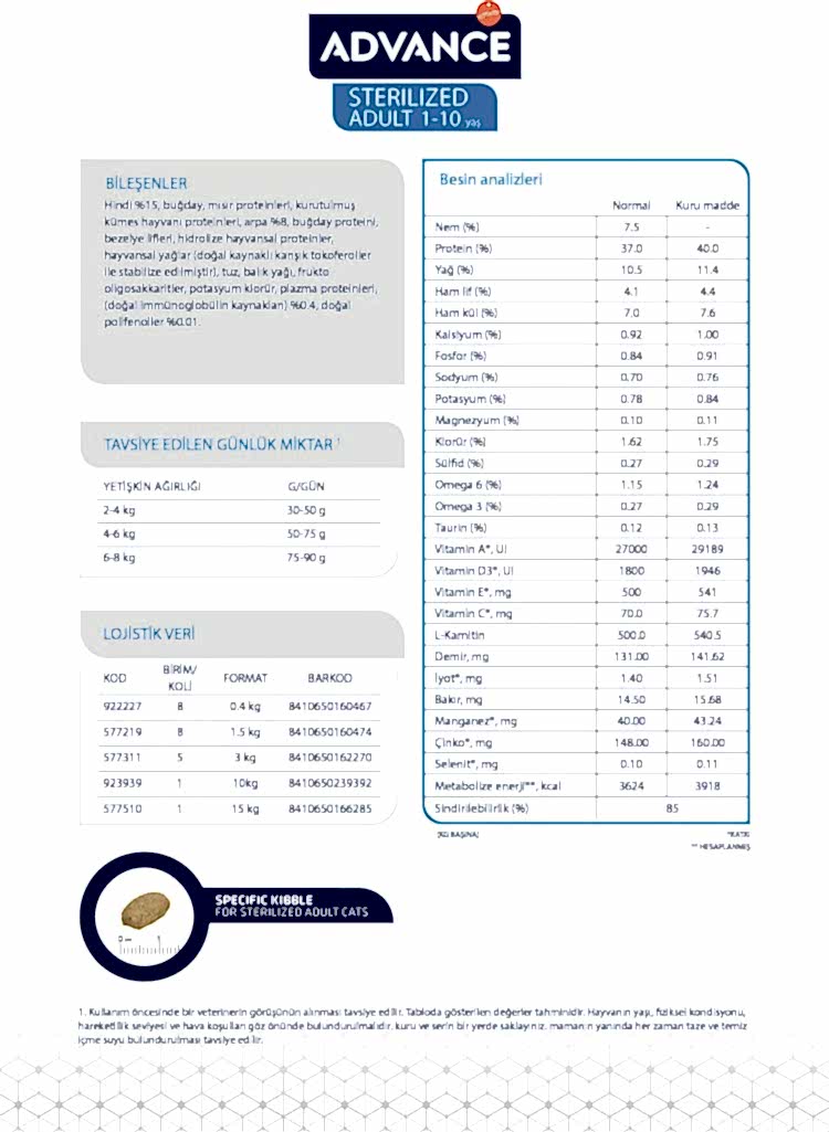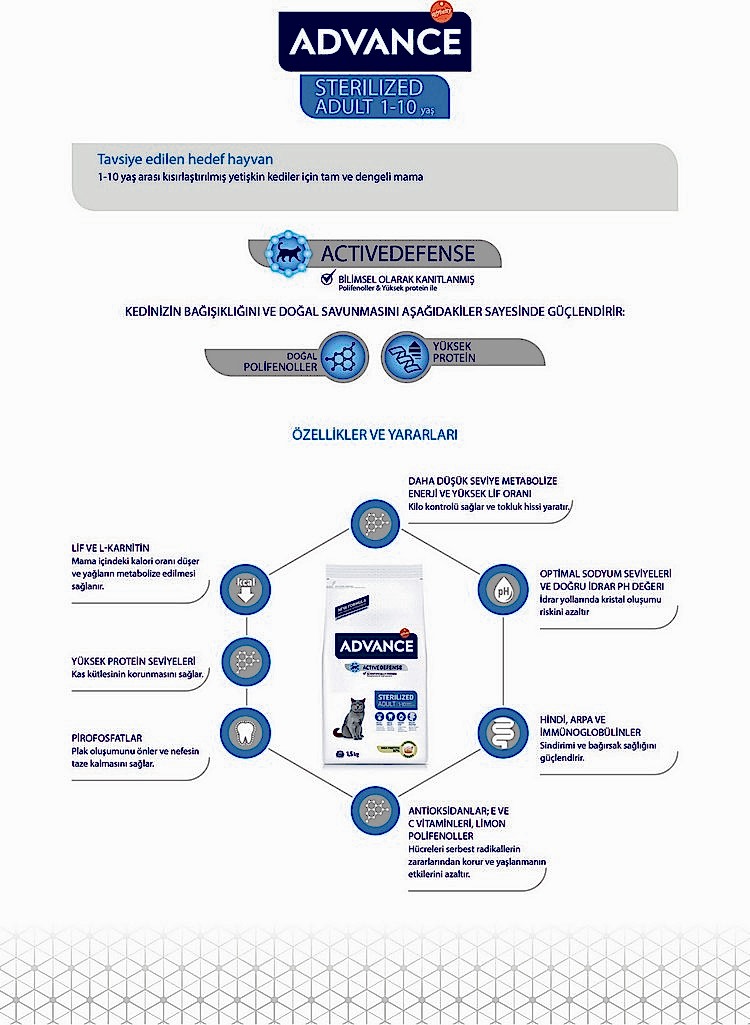 Advance Cat Sterılızed Turkey 1,2kg + 300gr Bonus Paket