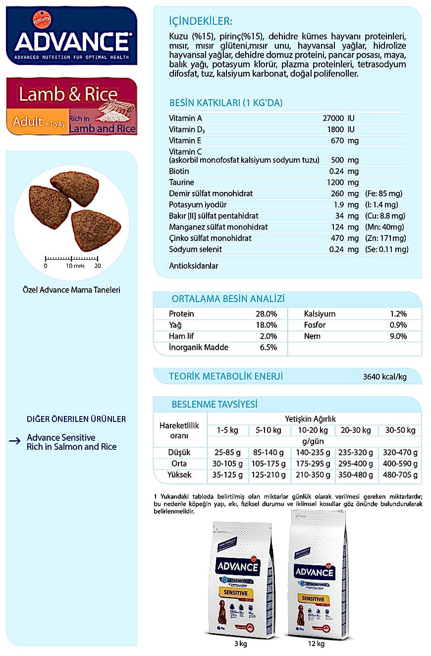 Advance Dog Sensıtıve Lamb & Rıce 3 Kg