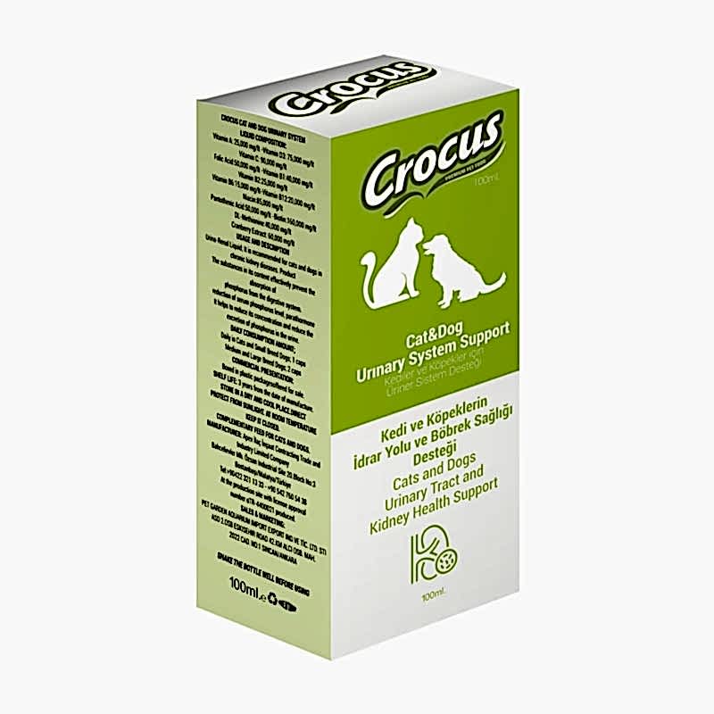 CROCUS KEDİ ve KÖPEK ÜRİNER SİSTEM LİKİT BİLEŞİMİ: Vitamin A: 25,000 mg/lt -Vitamin D3: 75,000 mg/lt Vitamin C:90,000 mg/lt-Folik Asit:50,000 mg/lt Vitamin B1:40,000 mg/lt-Vitamin B2:25,000 mg/lt Vitamin B6:15,000 mg/lt-Vitamin B12:20,000 mg/lt Niasin:85,000 mg/lt-Pantotenik Asit:50,000 mg/lt Biyotin:160,000 mg/lt-DL-Metiyonin:40,000 mg/lt Kızılcık Esktratı: 60,000 mg/lt