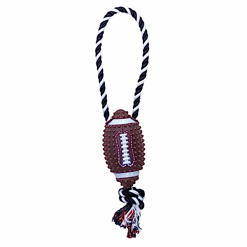 EASTLAND İpli Plastik Rugby Topu (15 cm), köpeğinizin oyun zamanını daha eğlenceli ve aktif hale getiren dayanıklı bir oyuncaktır.
