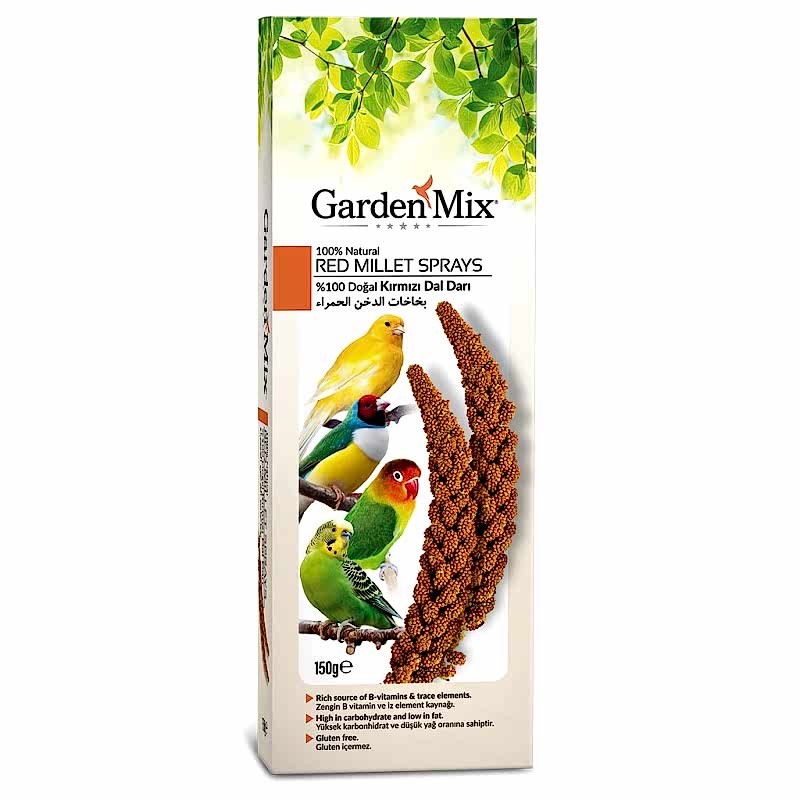Özel, bir taraftan yemin tazeliğini korumasını sağlarken, diğer yandann bozulmasını da önleyen hava alan poşet içerisnde kafes içi askı aparatıyla beraber %100 Doğal Kırmızı Dal Darı