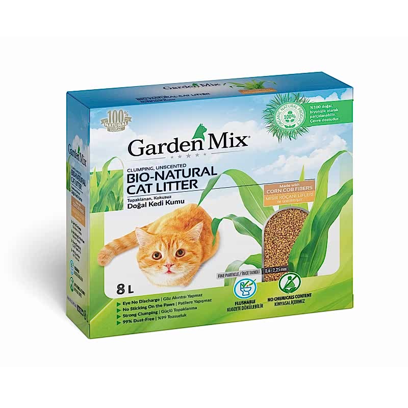 Mısır koçanı liflerinden yapılan, biyolojik olarak parçalanabilir, hiçbir kimyasal madde içermeyen %100 doğal, çevre dostu bir kedi kumudur. Tüm atıklar tuvalete atılarak çözdürülebilir. Kesinlikle gider borularında tıkanmaya sebep olmaz. Kötü kokuları etkili bir şekilde hapseder.