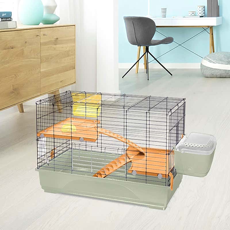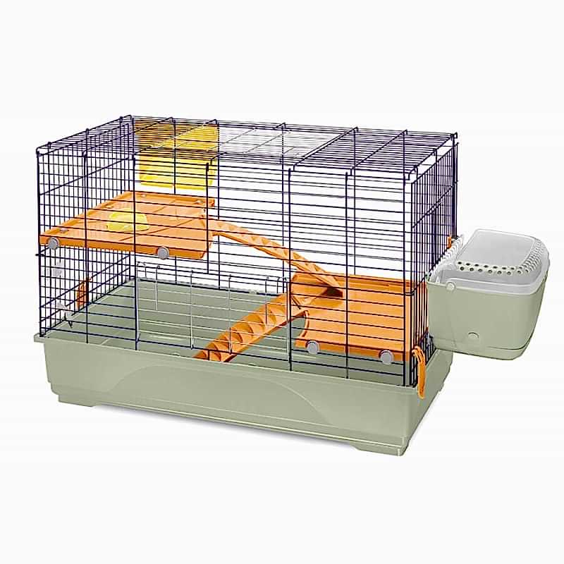 Benny 100, tavşanlar, kobaylar, çinçilyalar ve gelincikler için tasarlanmış, birden fazla kemirgeni barındırmak için mükemmel, geniş bir kafestir. Üst yapı, evcil hayvanınız için maksimum güvenlik sağlayan boyalı metal ağdan yapılmıştır ve emniyet kilitleriyle donatılmış büyük kapılara sahiptir. Sağlam plastik taban, derinlemesine temizlik için kullanışlı klipsler kullanılarak yapıdan kolayca çıkarılabilir.