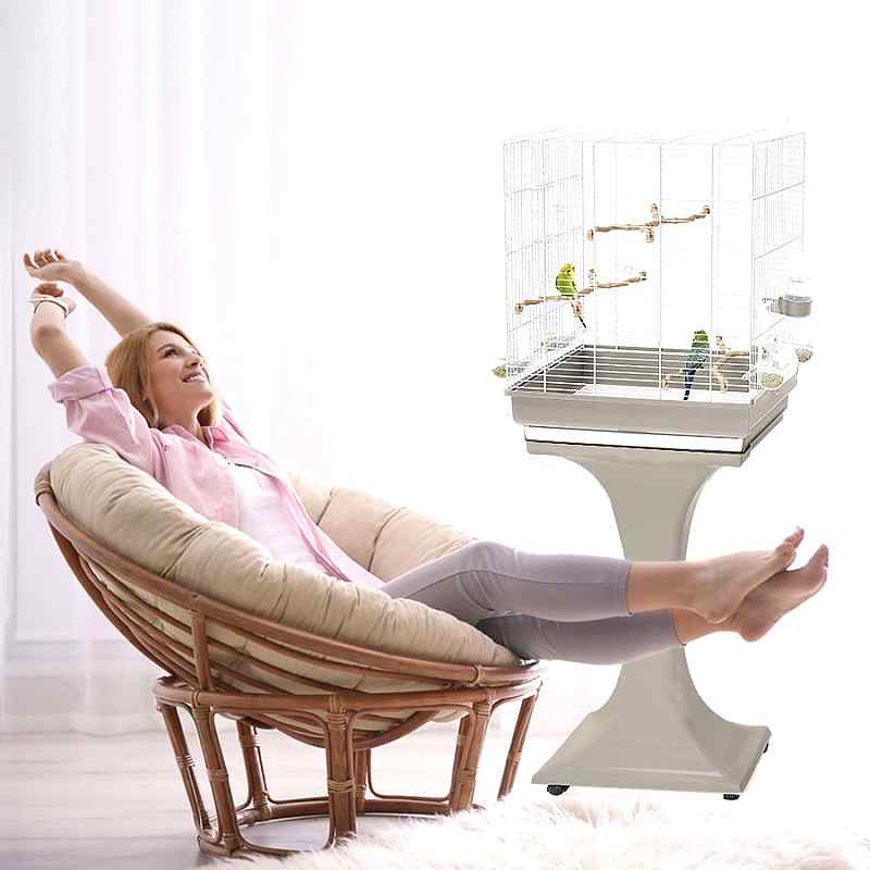 Camilla kafesi, kanaryalar, muhabbet kuşları ve küçük egzotik kuşlar için tasarlanmış geniş ancak olmazsa olmaz dikdörtgen bir kafestir. Kolay hareket için sağlam bir stand ve döner tekerleklerle birlikte gelir. Çıkarılabilir atık çekmecesi olan plastik taban sayesinde temizlik çok kolaydır. Camilla kafesi, dört şeffaf Mia yemliği, bir Tweety 100 suluk ve kuşunuzun ayak tutuşunu değiştirerek daha doğal bir ortamı taklit etmesini sağlayan üç dal şeklinde tünek gibi temel aksesuarlar içerir.
