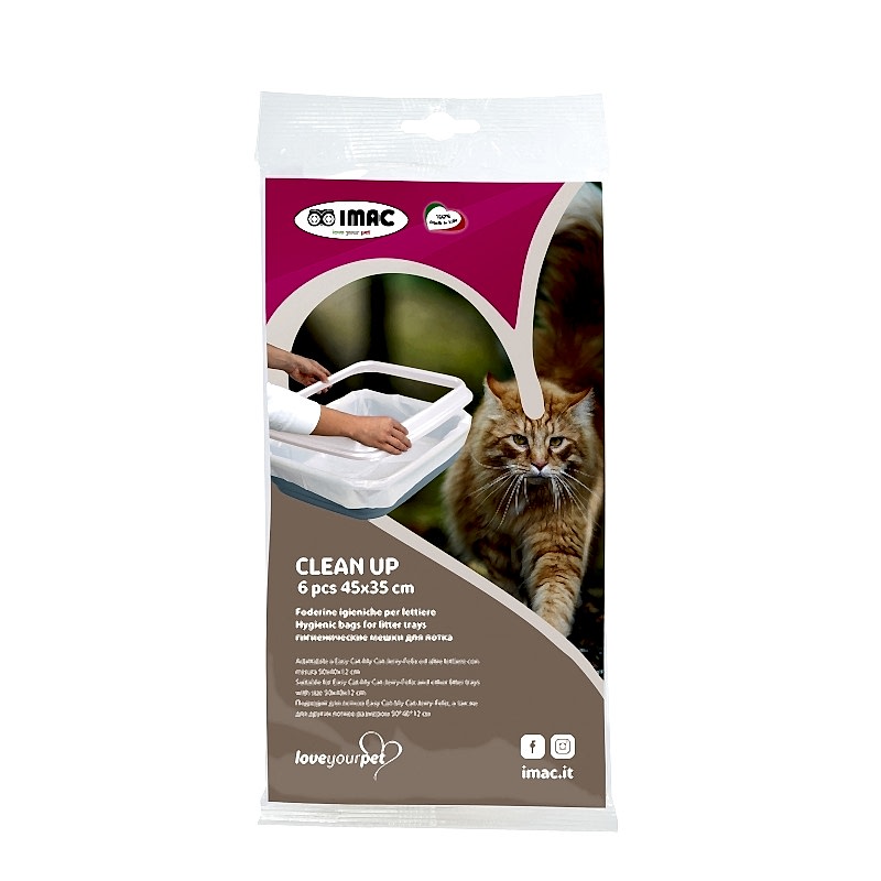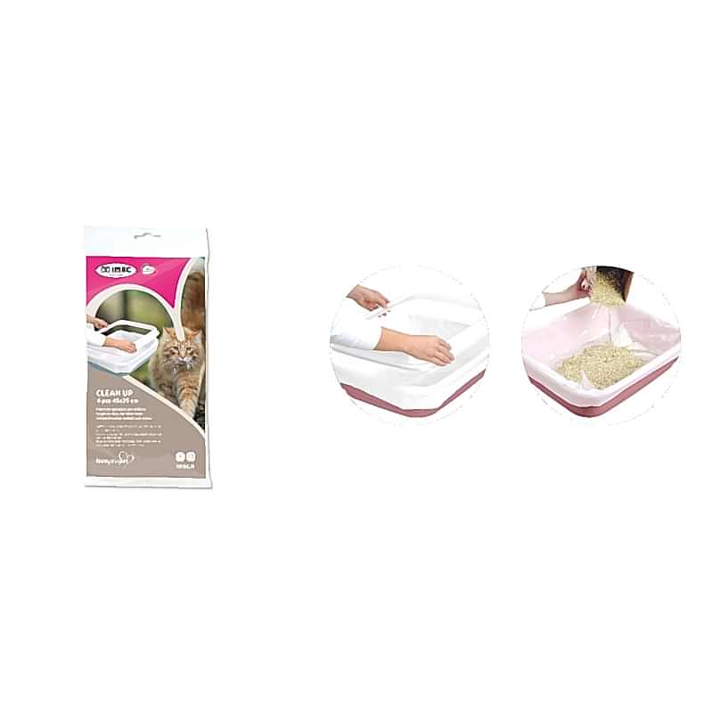 Imac Clean Up, orta ve küçük boy kedi tuvaletleri için özel olarak tasarlanmış, dayanıklı ve kullanışlı tek kullanımlık tuvalet poşetleridir. Hijyen standartlarını yükselterek temizlik işlemini kolaylaştırır ve son kullanıcıya pratik kullanım imkanı sağlar.
