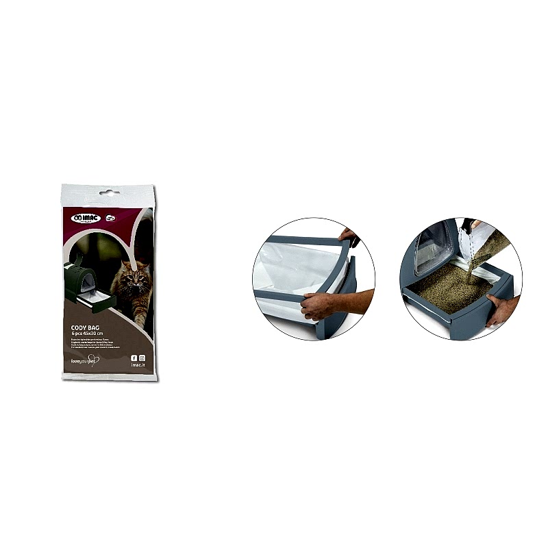 Kedinizin klasik tuvalet kabına uyacak şekilde tasarlanmış IMAC Cody Bag, pratik ve hijyenik kullanım sunar. İşte kısa özellikler: