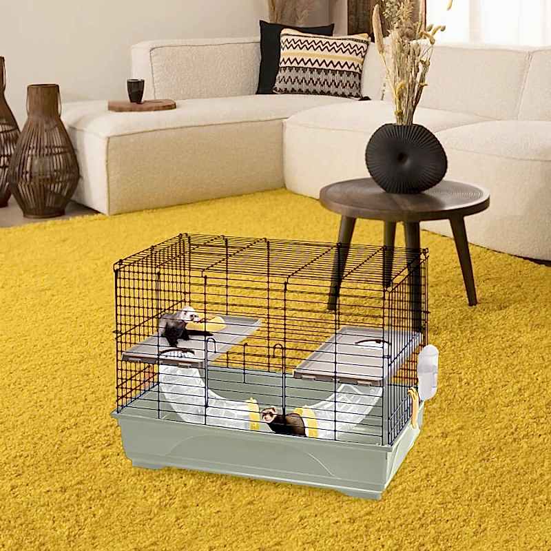 Gelinciğinizi en iyi durumda tutmak için IMAC, güzel, sağlam ve iyi donanımlı bir kafes olan Ferret Flat'i sunar. Geniş plastik taban, iki kullanışlı klips kullanılarak boyalı metal tel yapıya tutturulur. Geniş bir yan açıklıktan kolayca erişilebilir, bu da günlük bakım görevlerini zahmetsiz hale getirir.