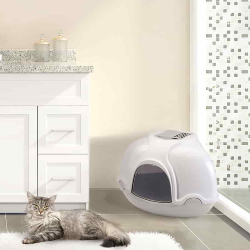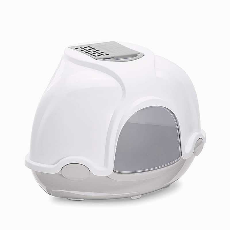 Ginger, evinizin herhangi bir köşesine mükemmel şekilde uyum sağlayan şık ve fonksiyonel bir kapalı kedi tuvaletidir. Kedinizin kullanımı sırasında mahremiyet ve konfor sunar. Yuvarlak hatlara ve göz alıcı renklere sahip tasarımıyla hem zarif hem de dayanıklıdır; yüksek kaliteli plastikten üretilmiştir. Günlük temizlik için kapağın çıkarılmasını kolaylaştıran pratik yan klipsler bulunur. Kapakta yer alan gizli taşıma sapı sayesinde kolayca taşınabilir. Sallanabilir kapı, kötü kokuların dışarı çıkmasını engellerken, aktif karbon filtre temiz hava akışı sağlar. Gizli bir yuva ise küreğin her zaman elinizin altında olmasını sağlar. Şeffaf plastik kapı ve aktif karbon filtre gibi yedek parçalar da mevcuttur. Ginger, kedinizin hijyen ve konforunu en üst düzeyde sunan sağlam ve geniş bir tuvalettir.