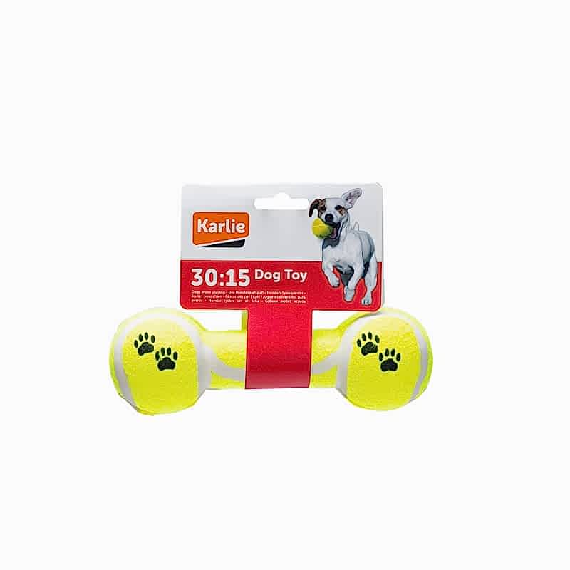 KARLIE DUMBELL ŞEKLİNDE TENİS TOPU OYUNCAĞI SARI 20X6X6.Köpek oyuncakları arasında klasikleşmiş bir üründür. Köpekler tarafından çok tercih edilir .Dayanıklıdır .Harika bir şekilde fırlatılabilir ,getirilebilir ve iyi zıplar .Parlak sarı renktedir .