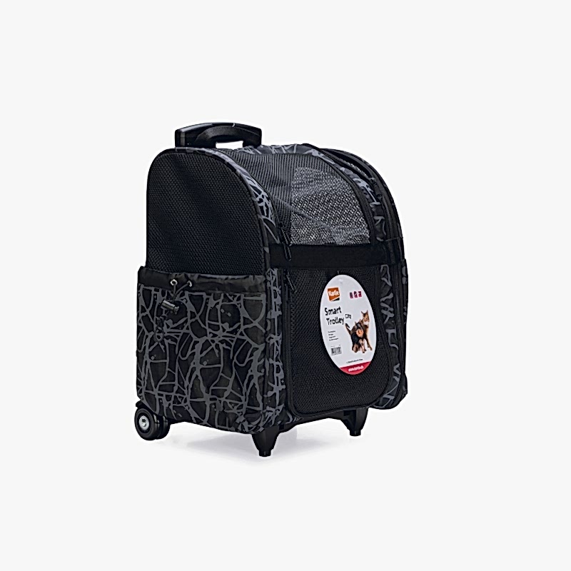 KARLIE NYL AKILLI TAŞIMA ARABASI SİYAH 32X29X45.Günlük kullanım için tasarlanmış çok yönlü bir taşıma çantası. Şehirde, seyahatlerde, fuarlarda, sergilerde veya veterinerde kullanmak için idealdir . Hem sırt çantası hem de tekerlekli valiz olarak kullanılabilir .Hayvan, çantada kendini güvenli ve rahat hisseder; yaka sabitleme sistemi, dışarı fırlamasını engeller .Yastıklı omuz askıları, konforlu taşıma sağlar . Tekerleklerin üzerini kapatan koruma özelliği ile işlevseldir. Uzun çekme kolu, kolay kullanım sunar .Hafif tasarımı (sadece 2,6 kg) sayesinde taşınması kolaydır . İyi görüş ve hava sirkülasyonu sağlayan birçok file alanı ile donatılmıştır.İki büyük yan cebi vardır, ekstra depolama alanı sunar .Küçük köpekler ve kediler için mükemmel bir taşıma çözümüdür. Maksimum taşıma kapasitesi yaklaşık 15 kg'dır.