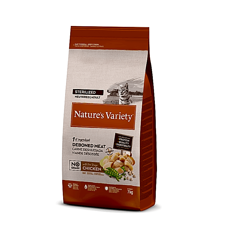 Kemiksiz serbest gezen tavuk eti* (%30), kurutulmuş tavuk proteinleri (%26), kurutulmuş bezelye* (%9), Patates nişastası*, kurutulmuş
