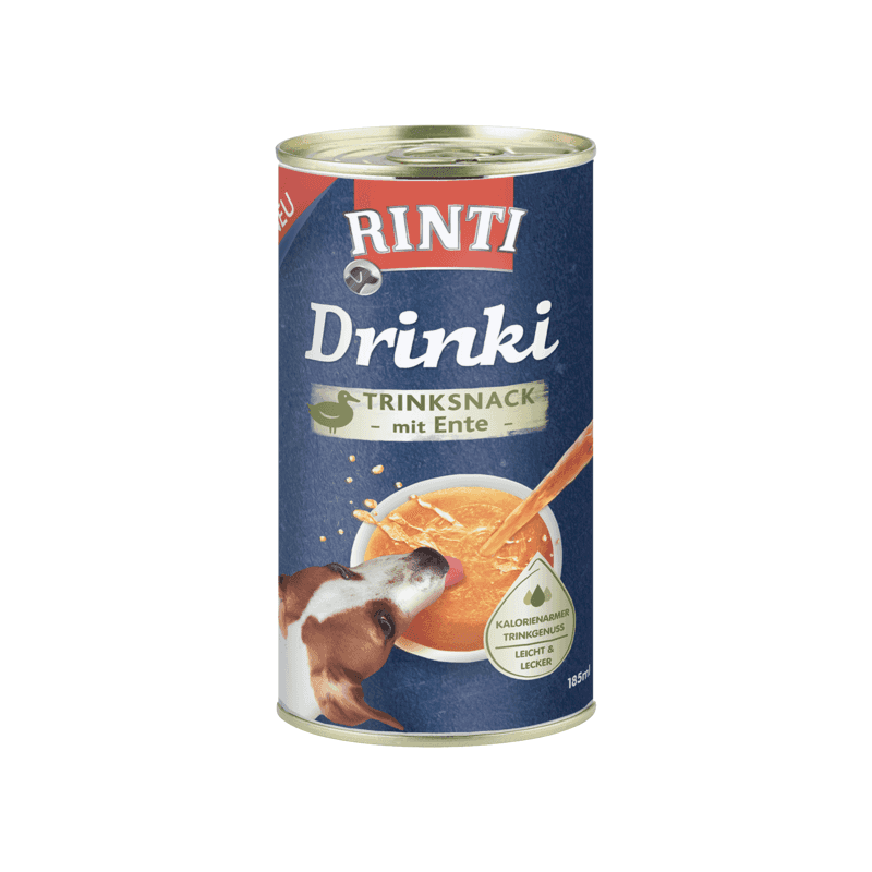 Yetişkin köpekler için tamamlayıcı mama Rinti Drinki, düşük kalorili atıştırmalıktır. Ödül olarak çok lezzetlidir. Kuru mama ile beslenirken, spor ve oyun sırasında da içme ihtiyacı artar, ardından su kabına Drinki eklenmesi içme zevkini artırır.